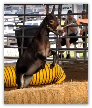 2) The donkey that won the most blue ribbons.